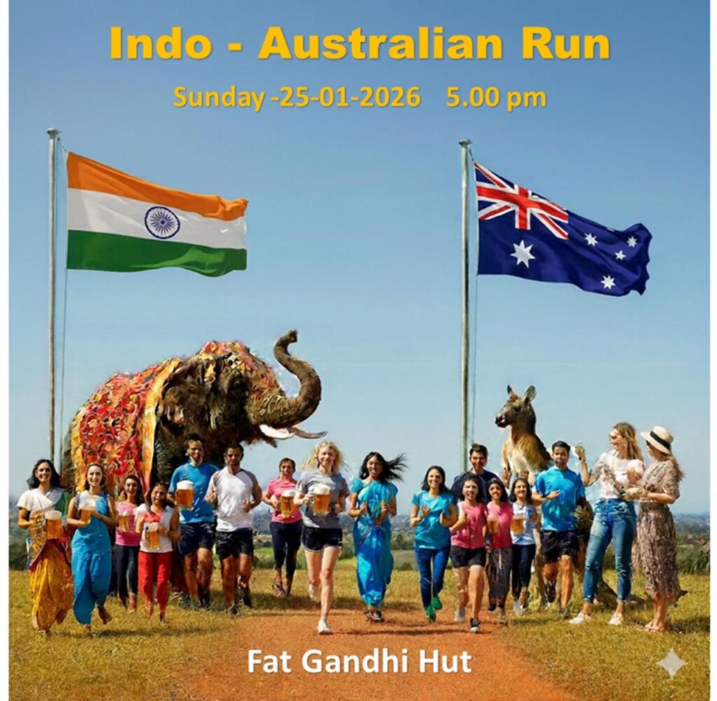 Sunday Run 🏃 set 1:- Come on an elephant 🐘 2:- Come hopping on a Kangaroo 🦘 3:- Come dressed as a Maharaja 4:- Come dressed as an aborigines 5:- Gift 🎁 for the best dressed Indian, Aussie