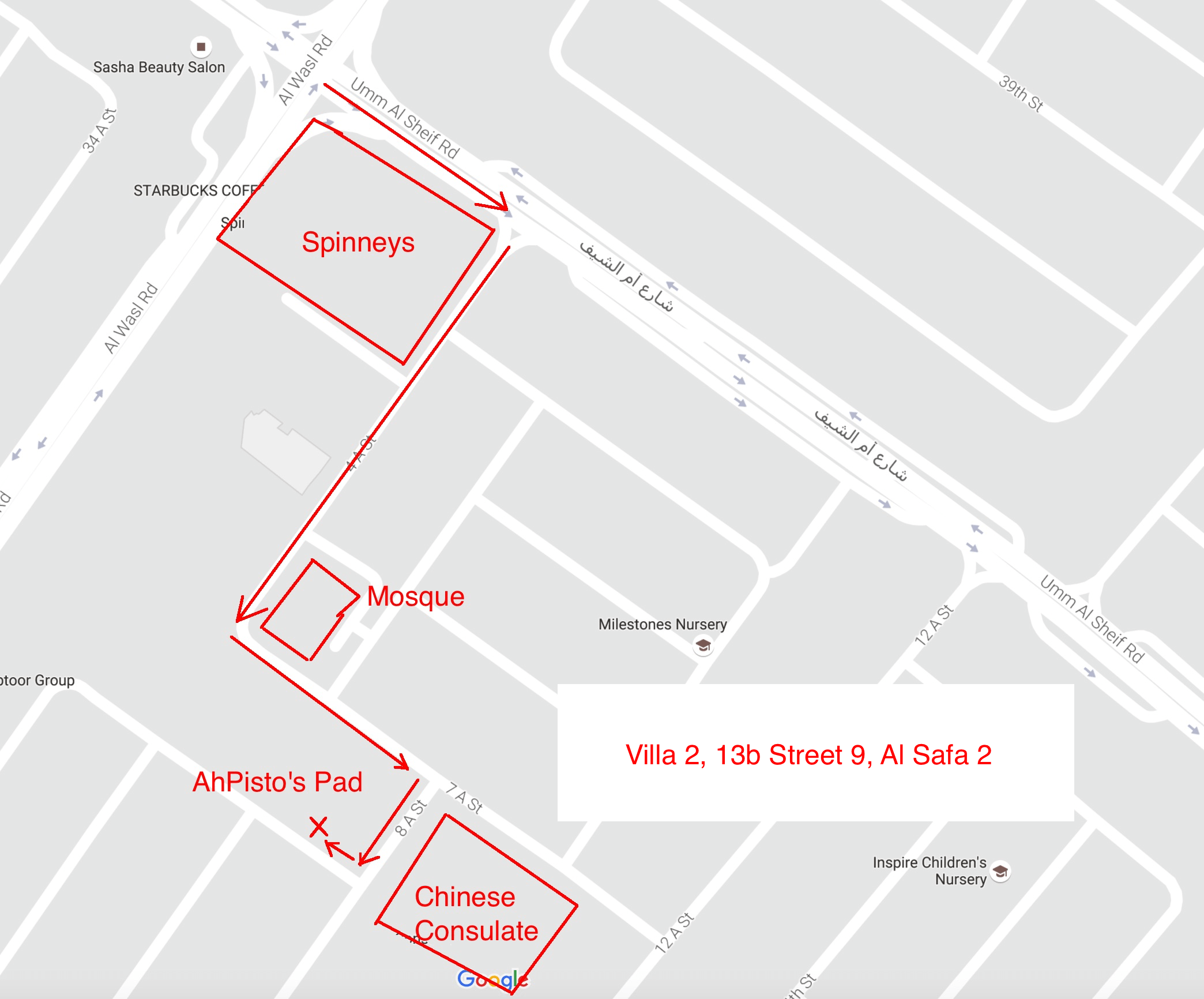 Location: Pisto’s Pad – Villa 2, 13b Street 9, Al Safa 2.