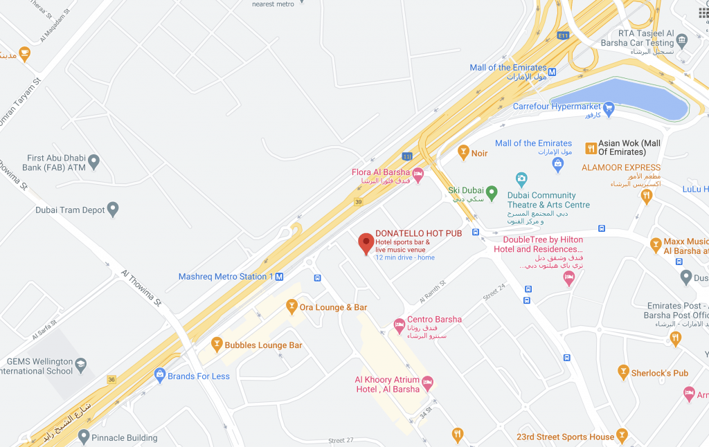Location: Donatello Hot Pub in the Donatello Hotel, Barsha. Paid parking is available but scarce, so the manager has offered us parking in the basement of the hotel – pull into the area outside the hotel and tell the security man you are with the Desert Hash and he will open the gate for you.